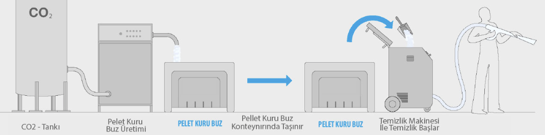 Kuru Buzla Temizleme, 3 aşamalı bir işlemdir: